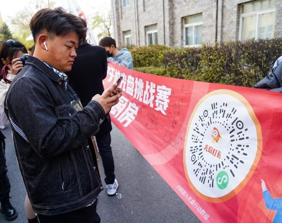 光盘行动首先在线上展开,进行了光盘行动挑战赛,以此鼓励同学每天积极进行光盘打卡。本次线下展开的光盘行动,提高了同学们的参与热情和意愿,同学们积极踊跃的在光盘行动的横幅上签字,表达了自己对光盘行动的决心!