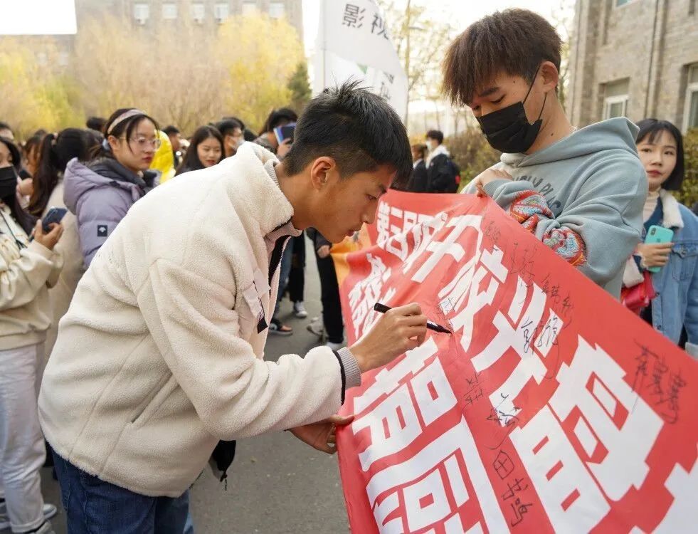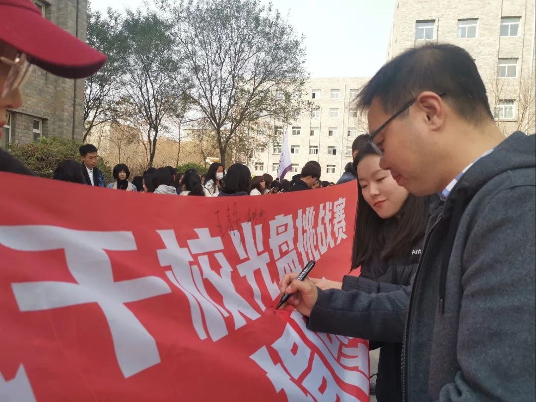 我院张凡书记、团总支书记关赛老师以及刘洋老师也亲临现场前来签字,更是带动了同学们参与光盘行动的积极性。