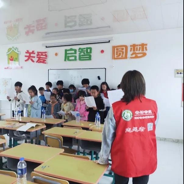志愿者们运用自己的专业知识去教授孩子们,童稚的朗诵声从课堂中传出来了,“天地苍苍,乾坤茫茫,中华少年,项天立地当自强……”我们看到孩子们都在很认真学习着朗诵,口才的锻炼是为了让他们更好地去沟通交流,也是在学习着一门平时难以得到专业教学的课程,他们都在抓住这个机会在课堂上展示自己。