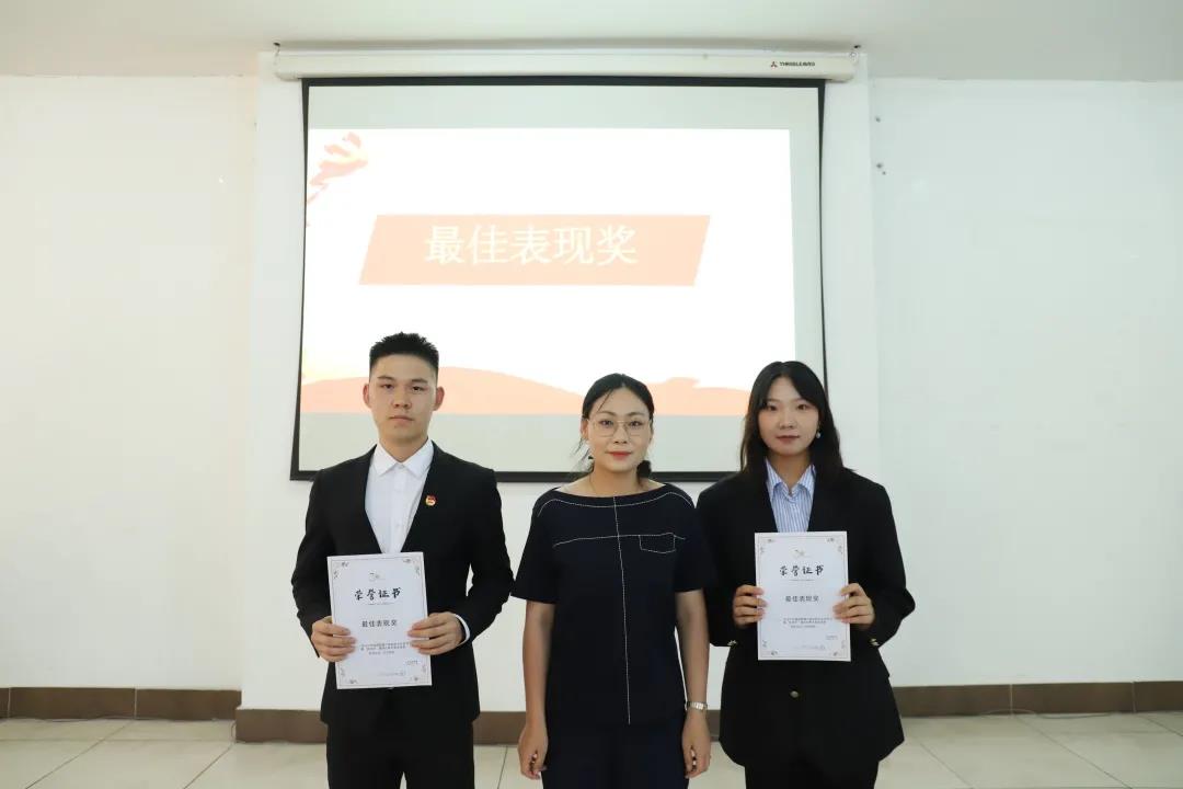 由数字媒体学院团总支书记郭冠辰老师、新闻传播学院团总支书记杨亚超老师为获奖同学颁奖