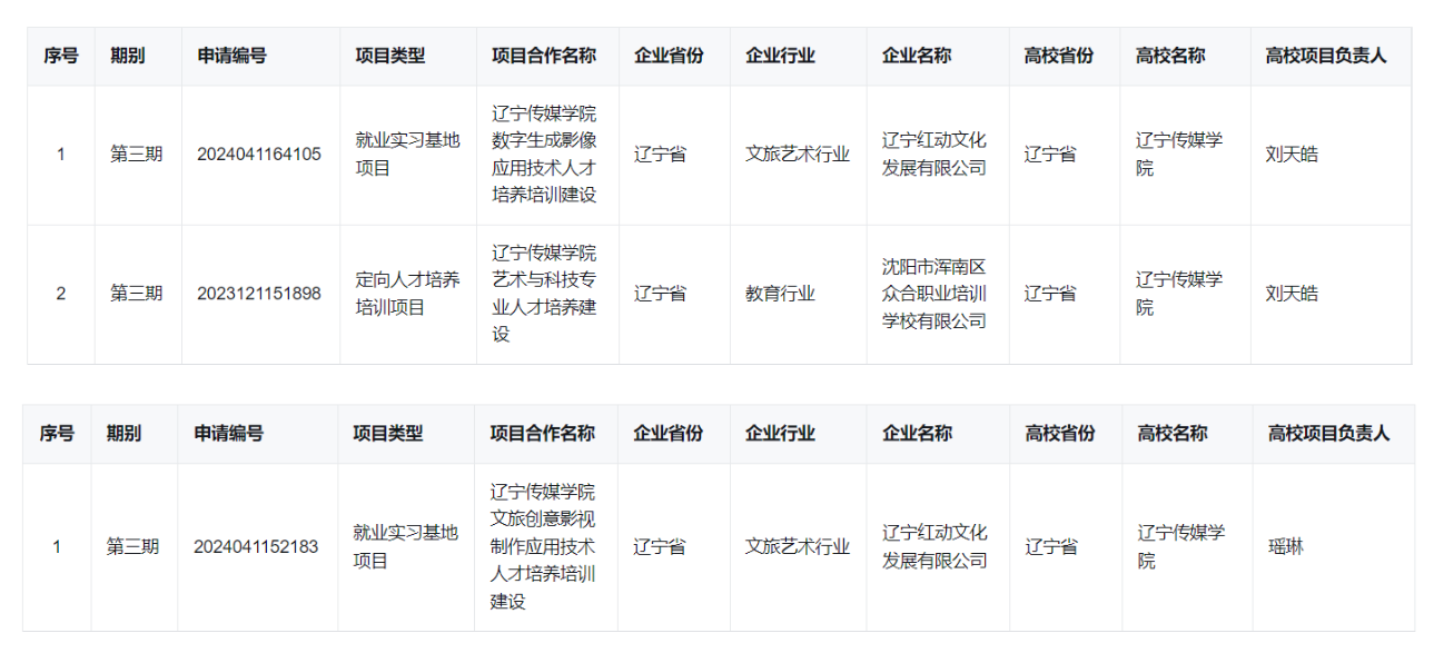 今日,教育部公布了第三期供需对接就业育人项目立项名单,太阳成集团官方网站影视学院3个项目获批立项。