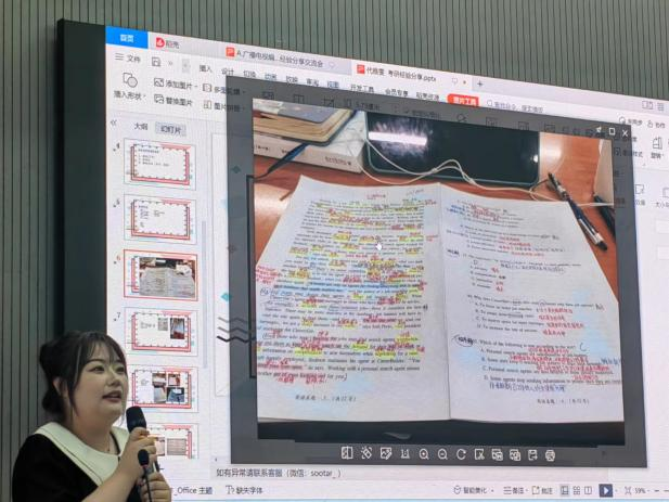 戴雅雯分享了个人因第一志愿失利而调剂的经历,供在场学生引以为鉴。戴雅雯展示了各专业细致的复习笔记,她认为备考过程中“手写”各种作业非常有必要,字迹及书写速度对最终成绩有一定程度的影响。