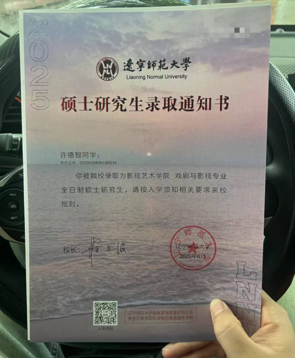 许德智同学则以优异的成绩考取辽宁师范大学戏剧与影视专业硕士研究生。作为戏剧影视文学专业的学生,许德智在剧本创作、影视评论等领域展现出深厚功底。他参与创作的多部微电影作品在国内外影展中崭露头角,其学术研究能力也备受导师认可。许德智表示,学院注重理论与实践结合的教学模式,让他在文学创作与学术研究之间找到了平衡点,助力他实现考研目标。