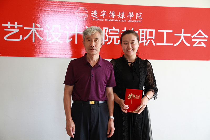 会上,张漪副院长宣布了艺术设计系学院院标图案,介绍了院标的设计说明,刘惠民院长对设计者吴茜老师进行了奖励。