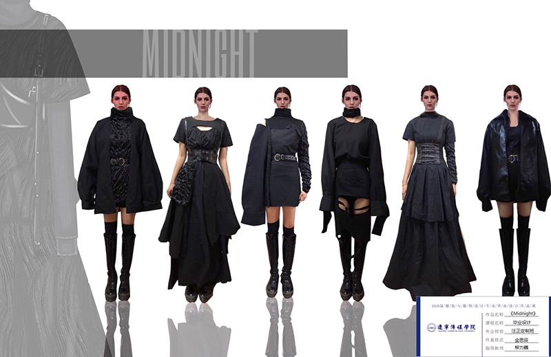 在新冠疫情的特殊时期,教师秉承着战疫防疫不掉线,持续打造云端课程,在充分了解学生具体情况,学校相关要求和教师自身教学条件的基础上,在毕业设计指导环节采取云端指导,老师不仅对学生作品进行了耐心的指导,而且对作品质量有严格的要求,使今年的毕业设计作品的质量得到了保证。2020届服装与服饰设计专业共计90名毕业生,指导教师:张漪、郭岩、魏秋菊、柳力巍、焦子桐、顾晓雪、刘晓萌、边江月。本次毕业设计主要分为两个方向:创意礼服设与制作方向和创意时装设计与制作方向。