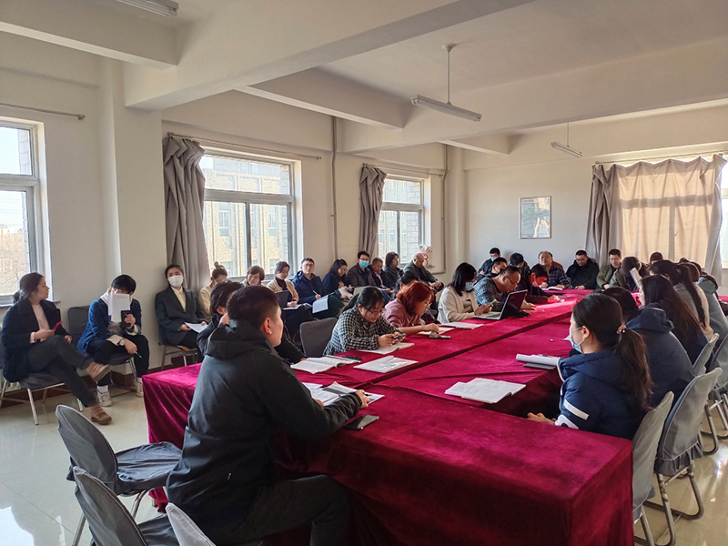 会上张漪副院长带领全体教职员工学习教育部、辽宁省教育厅关于应用型人才培养、应用型大学建设等相关文件。