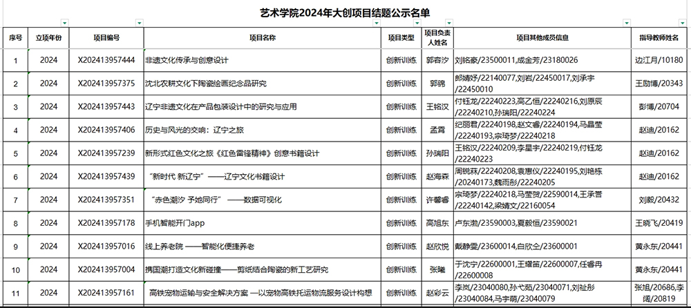 艺术学院2024年大学生创新训练计划校级项目结题答辩公示