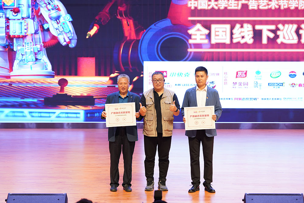 随后,广告人文化集团副总经理马雪松先生为艺术学院、管理学院、新闻学院颁发”中国大学生广告艺术节学院奖2025年春季征集大赛-年度广告教育推动奖”证书。这一荣誉既是对学校广告教育工作的充分肯定,也彰显了各学院在人才培养方面的突出成效。