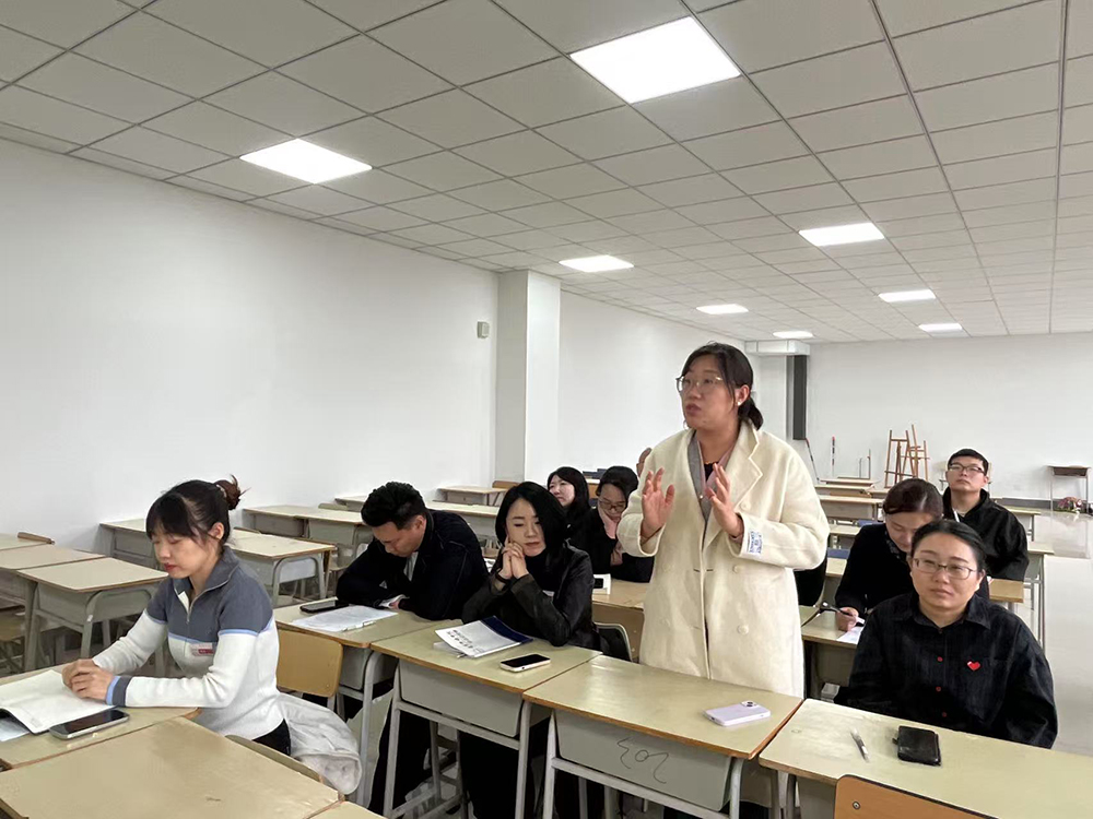 在交流环节,成员组老师各抒己见。视觉传达设计系副教授王爽老师分享对课程思政的理解,她认为课程思政不是生硬灌输,而是要在专业课程中隐性渗透,强调通过专业课教师协同育人实现课程思政目标,重视其在培养学生价值观和职业道德方面的作用,突出课程思政的实用性与目的性。