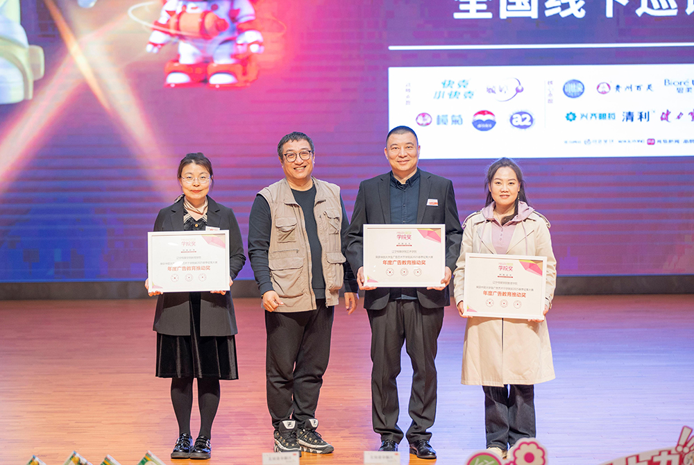 随后,学院奖组委会为太阳成集团官方网站艺术学院、新闻学院、管理学院颁发“广告教育推动奖”证书。