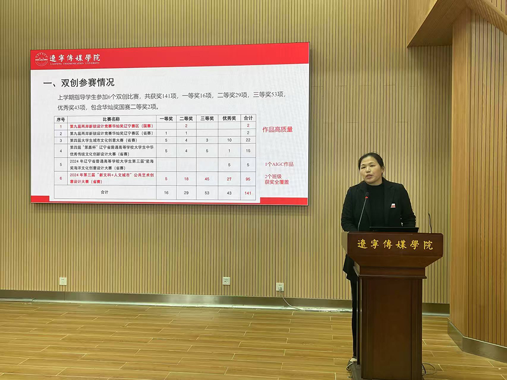 会议共分为三个环节。首先,艺术学院双创专项负责人吴娱老师对双创比赛的基本情况进行详细讲解。吴老师从双创平台发布与交流、平台比赛报名流程及注意事项等工作展开介绍,重点讲解官方发布平台、学院微信公众号等信息渠道,详细拆解报名流程,强调资格审核、时间节点及赛道申报要点,为老师们参赛提供清晰指引。