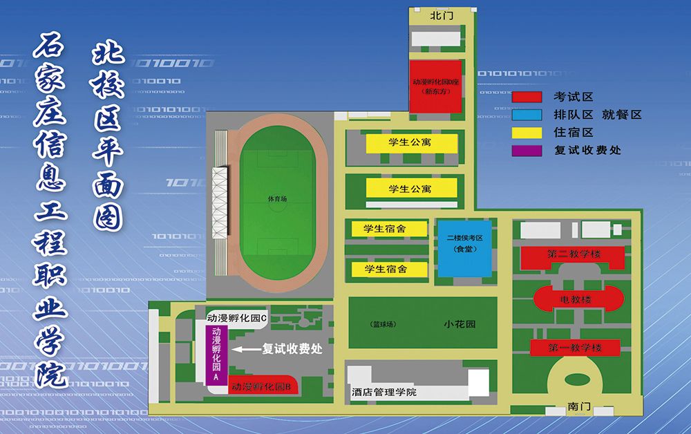 3月5日当天广播电视编导、播音与主持艺术、影视摄影与制作在石家庄信息工程职业学院北校区进行考试。