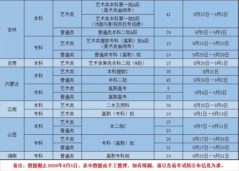 2020年各省、自治区高考招生录取工作将依据各省、自治区招生委员会安排时间进行,各批次录取时间详见各省、自治区招生考试院官方网站。